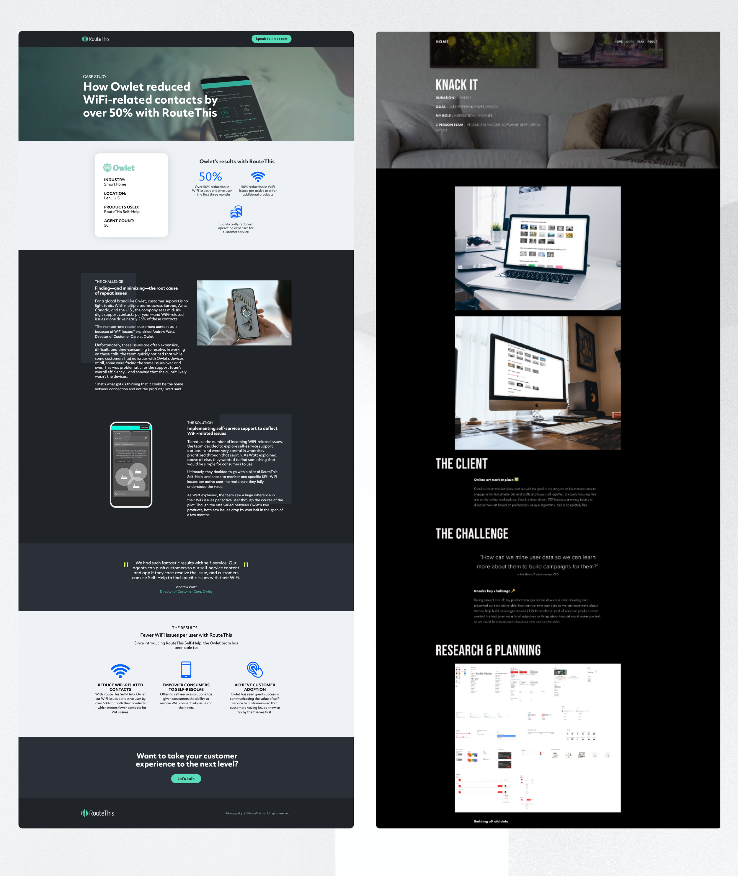 During the inspiration session, I referenced owlet our competitors, and also my own case study. Admiring elements of each such as the large hero image, followed with a card style metrics and also having the problem statement and solution very clear, with the results. Very short, simple, and straight to the point.